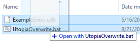 echo F|xcopy /y "%~1" "{CookedPCConsole}\Labs_Utopia_P.upk"{CookedPCConsole} is the folder containing all of Rocket League’s assets, within a folder such as: C:\Program Files (x86)\Steam\steamapps\common\rocketleague\TAGame\CookedPCConsole
