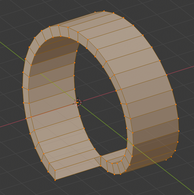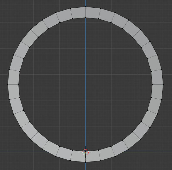 Grab the rectangle and move it down in the Z axis to wherever looks good. Exit Edit Mode and press Apply on the Screw Modifier. This creates editable geometry for the whole loop. Move the whole loop up so that the upper edge of the end faces is level with the X-Y grid. Lastly, fill in the end faces of the loop.