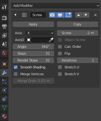 Add a Screw Modifier in the Modifier tab of the Properties Window. Increase the number of steps, and set Screw to 2 or -2. This will take the contour we have defined and spin it around in a corkscrew. As is, it doesn’t look like much fun to drive on.
