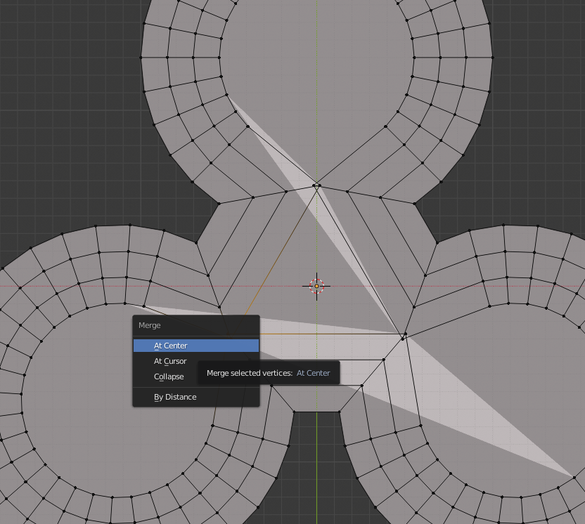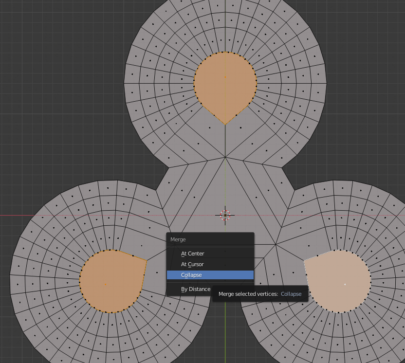 Repeat the process a few times to get a kind of grid within the circles. Once the inset face is self intersecting, select the crossed vertices and merge them with Alt+M. Select the faces with more than 4 edges, press E to Extrude them, then right click to stop the action. Press Alt+M and select Collapse to create triangles within these faces.